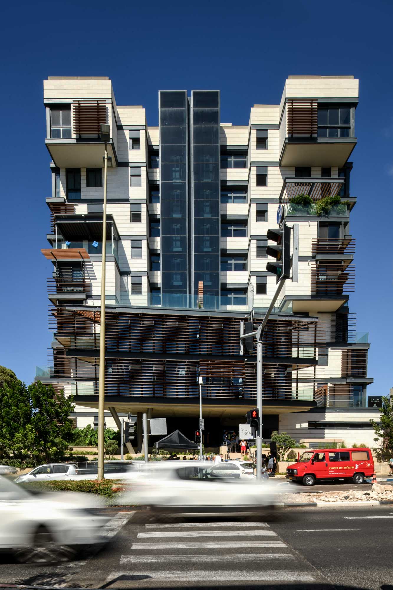A residential building with a commercial wing facing a public passageway connects the Louis Promenade to President Avenue. The building has 9 floors, offering a panoramic view of Mount Carmel and the sea.
