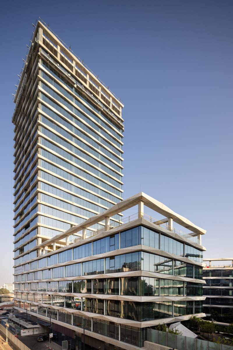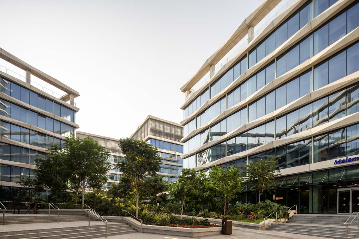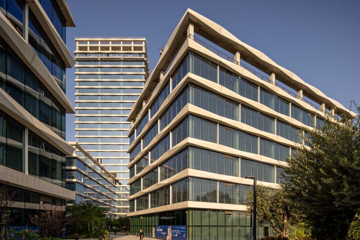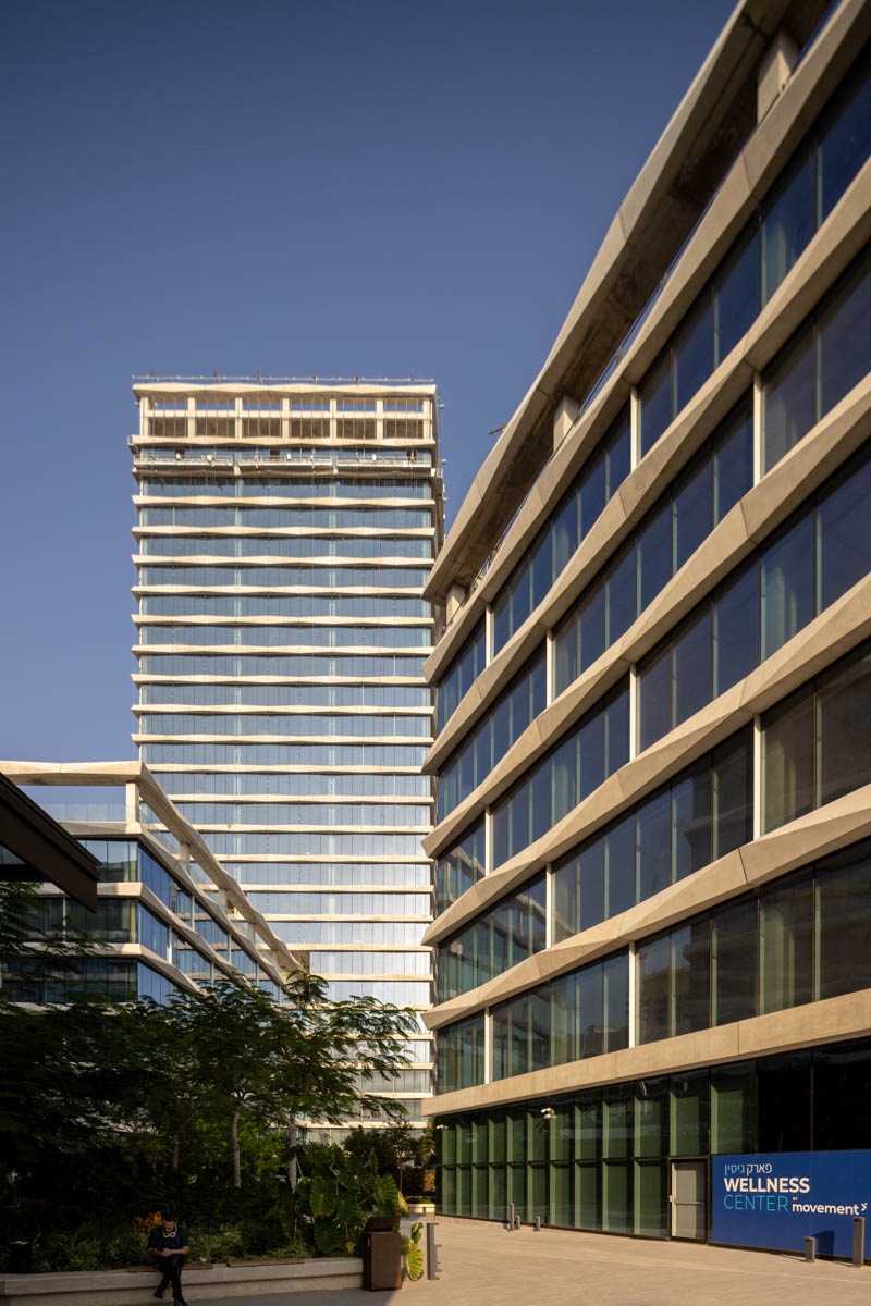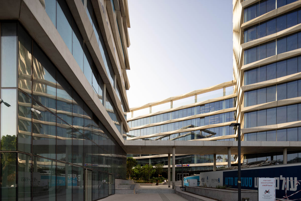 The complex, spanning 15 dunams, consists of two 5-story buildings and an additional tall building rising to 25 stories.
